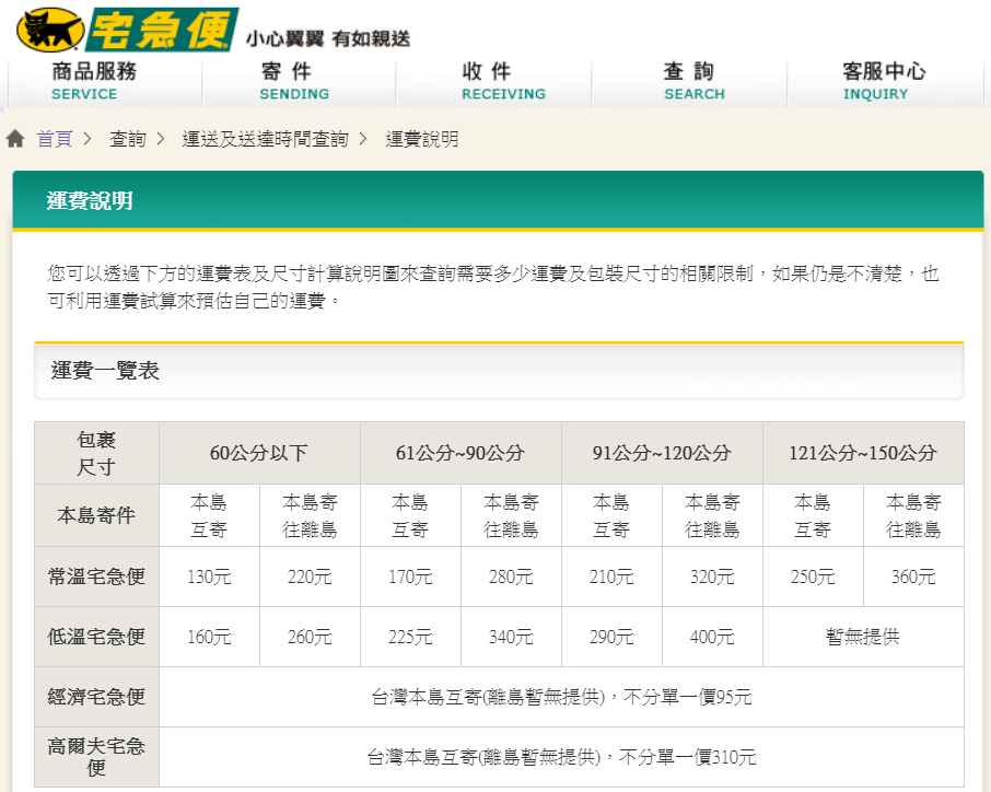 黑貓常溫宅配: 滿1500元免運費,未滿1500元酌收運費170元。