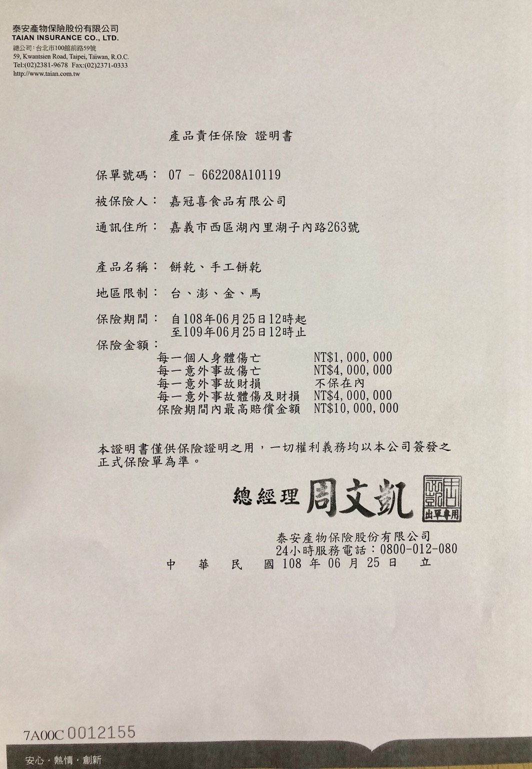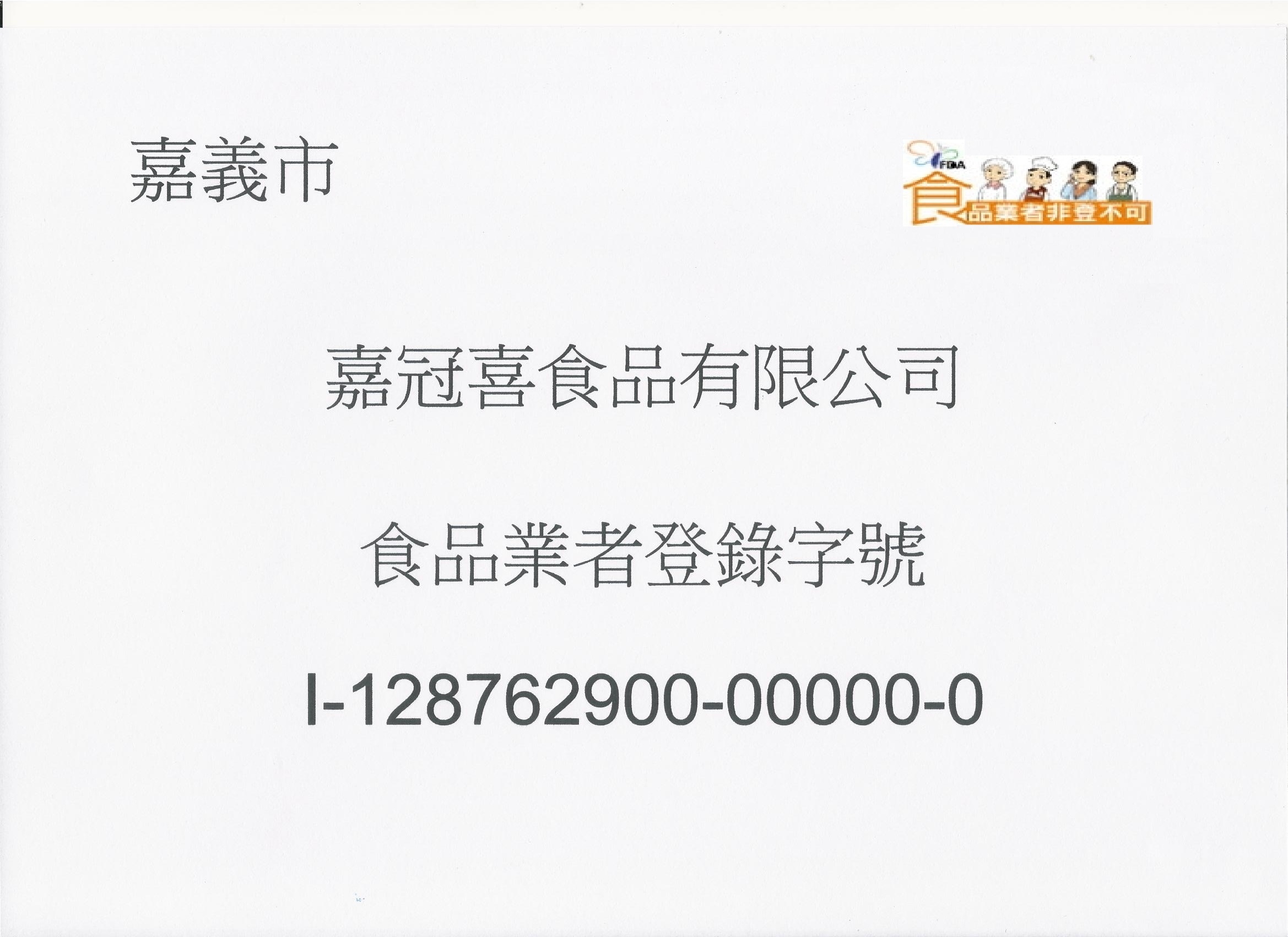 食品業者非登不可-登記字號_嘉冠喜食品有限公司
