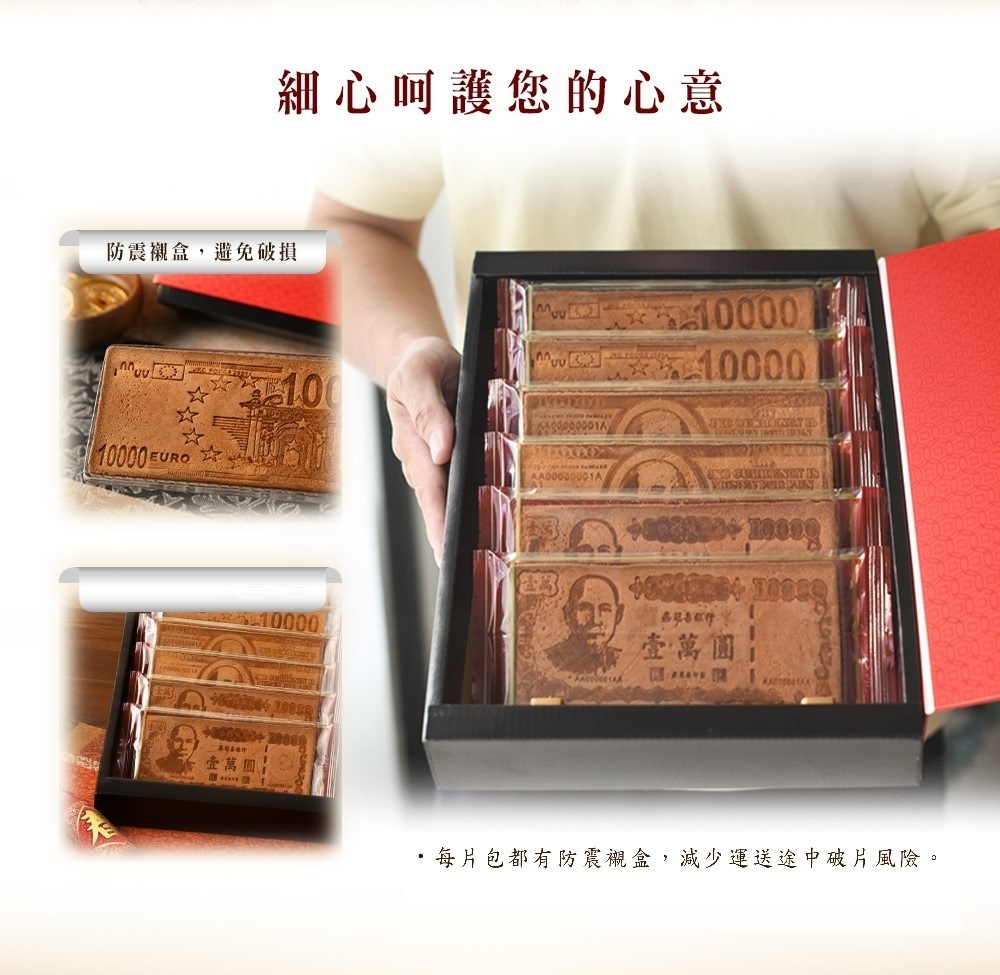※PS.鈔票煎餅禮盒沒有附贈特大紅包袋需要請加購(一組6個24元)。