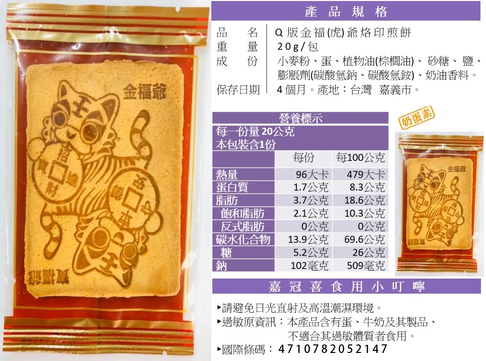 原味牛奶口味,煎餅尺寸:9.5x7.5x0.4 cm,20g,一片一包裝。